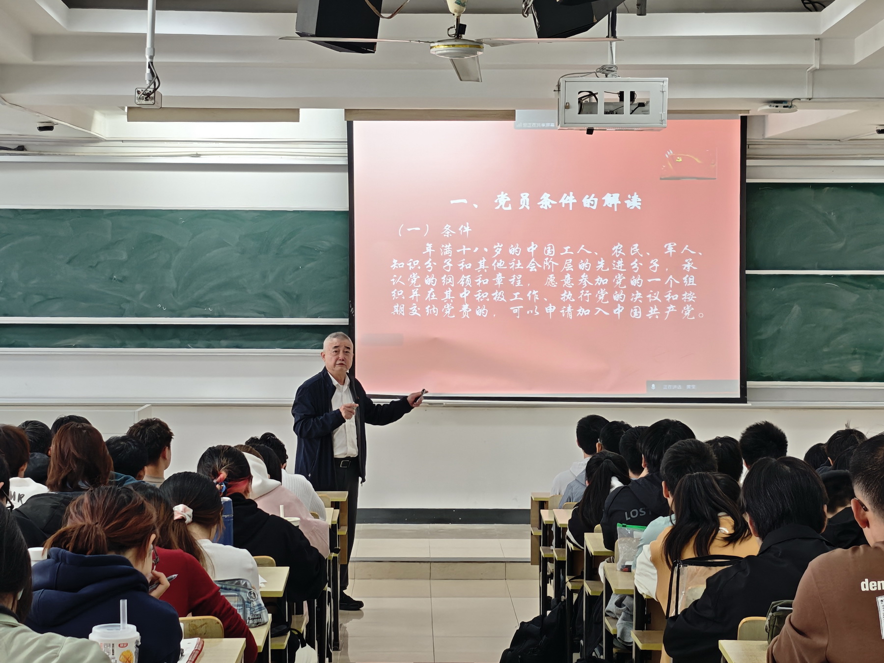 专题党课培训环节,校关工委讲师团的储成祥老师以《牢记党员条件,争做先锋模范》为题,给同学们上了一节内容详实的党课,加深了积极分子们对党章党规的理解。储成祥老师勉励同学们将理论知识与实践相结合,积极发挥榜样作用,争取早日在思想上、在行动上加入中国共产党。