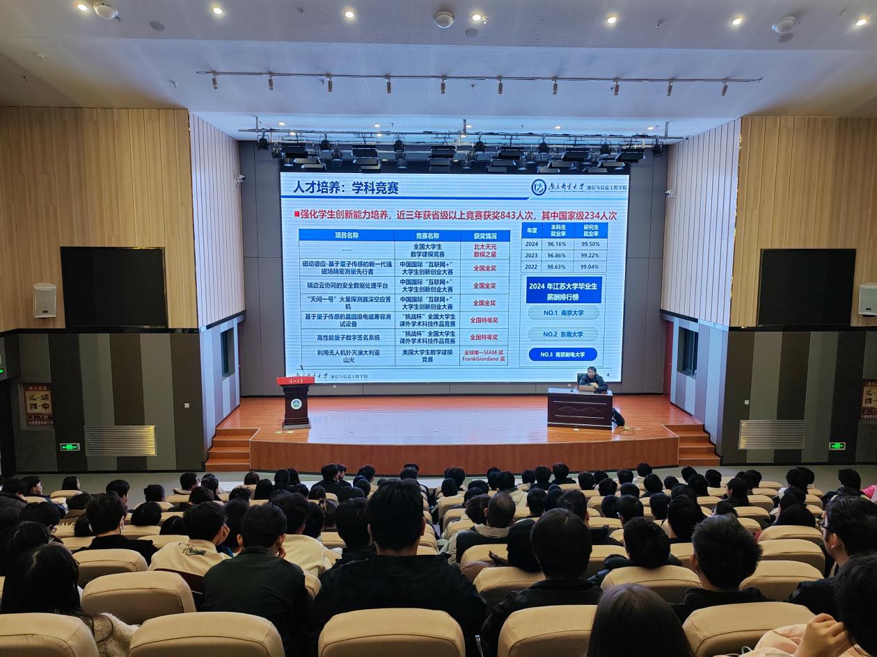 我院通信工程系副主任蒋锐为喀什大学电子与通信工程学院大二、大三全体本科生开展研究生招生宣讲,介绍了学院发展历程、人才培养成果、学院七大科研平台和三大科研高地,以及学院各主要团队情况等。